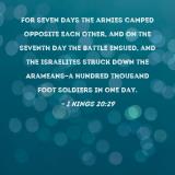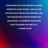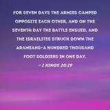 For seven days the armies camped opposite each other, and on the seventh day the battle ensued, and the Israelites struck down the Arameans--a hundred thousand foot soldiers in one day.