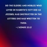 So the elders and nobles who lived in Naboth's city did as Jezebel had instructed in the letters she had written to them.