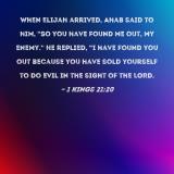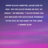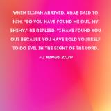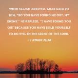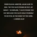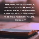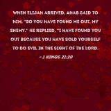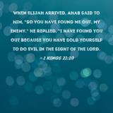 When Elijah arrived, Ahab said to him, "So you have found me out, my enemy." He replied, "I have found you out because you have sold yourself to do evil in the sight of the LORD.