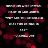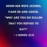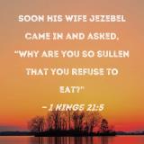 Soon his wife Jezebel came in and asked, "Why are you so sullen that you refuse to eat?"