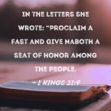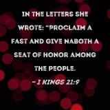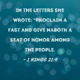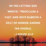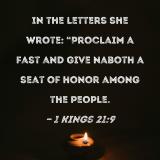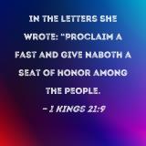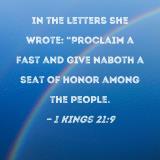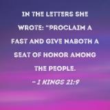 In the letters she wrote: "Proclaim a fast and give Naboth a seat of honor among the people.
