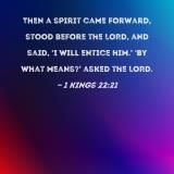 Then a spirit came forward, stood before the LORD, and said, 'I will entice him.' 'By what means?' asked the LORD.
