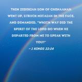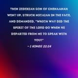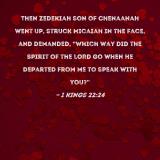 Then Zedekiah son of Chenaanah went up, struck Micaiah in the face, and demanded, "Which way did the Spirit of the LORD go when He departed from me to speak with you?"