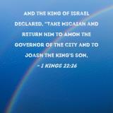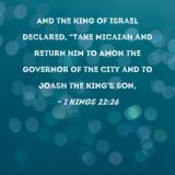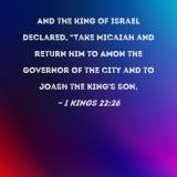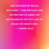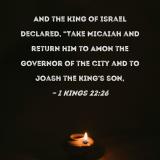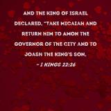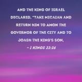 And the king of Israel declared, "Take Micaiah and return him to Amon the governor of the city and to Joash the king's son,