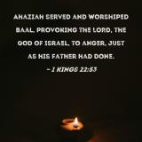 Ahaziah served and worshiped Baal, provoking the LORD, the God of Israel, to anger, just as his father had done.