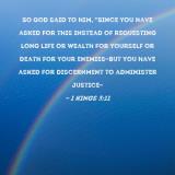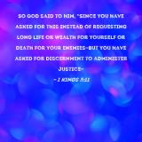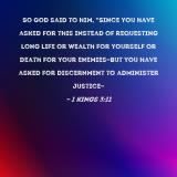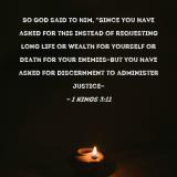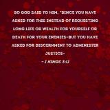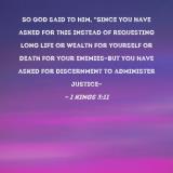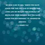 So God said to him, "Since you have asked for this instead of requesting long life or wealth for yourself or death for your enemies--but you have asked for discernment to administer justice--