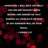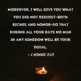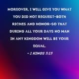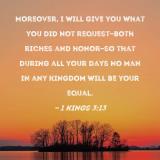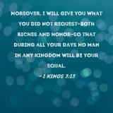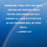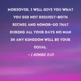 Moreover, I will give you what you did not request--both riches and honor--so that during all your days no man in any kingdom will be your equal.