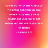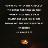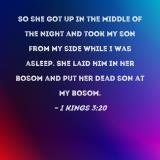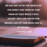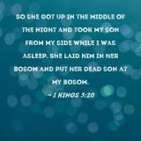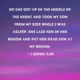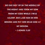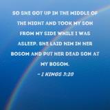 So she got up in the middle of the night and took my son from my side while I was asleep. She laid him in her bosom and put her dead son at my bosom.