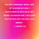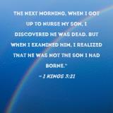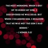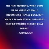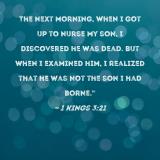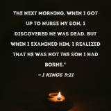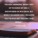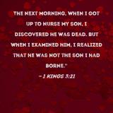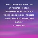 The next morning, when I got up to nurse my son, I discovered he was dead. But when I examined him, I realized that he was not the son I had borne."