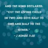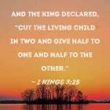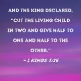 and the king declared, "Cut the living child in two and give half to one and half to the other."