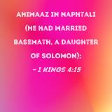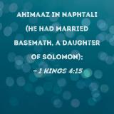 Ahimaaz in Naphtali (he had married Basemath, a daughter of Solomon);