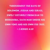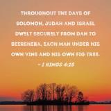 Throughout the days of Solomon, Judah and Israel dwelt securely from Dan to Beersheba, each man under his own vine and his own fig tree.