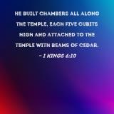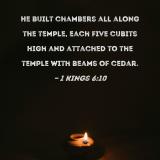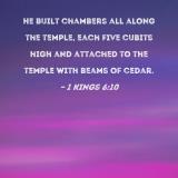 He built chambers all along the temple, each five cubits high and attached to the temple with beams of cedar.