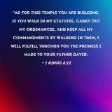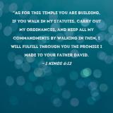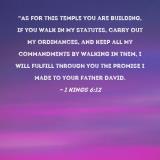 "As for this temple you are building, if you walk in My statutes, carry out My ordinances, and keep all My commandments by walking in them, I will fulfill through you the promise I made to your father David.