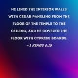 He lined the interior walls with cedar paneling from the floor of the temple to the ceiling, and he covered the floor with cypress boards.