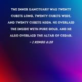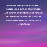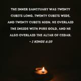 The inner sanctuary was twenty cubits long, twenty cubits wide, and twenty cubits high. He overlaid the inside with pure gold, and he also overlaid the altar of cedar.