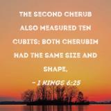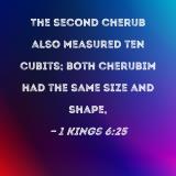 The second cherub also measured ten cubits; both cherubim had the same size and shape,