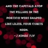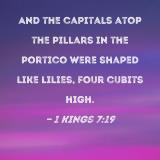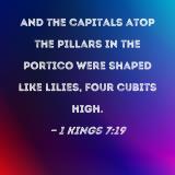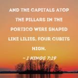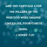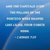 And the capitals atop the pillars in the portico were shaped like lilies, four cubits high.