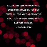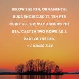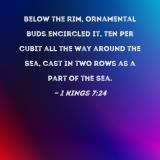 Below the rim, ornamental buds encircled it, ten per cubit all the way around the Sea, cast in two rows as a part of the Sea.