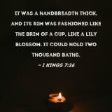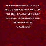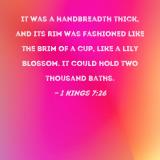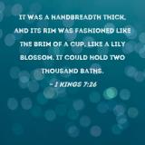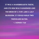 It was a handbreadth thick, and its rim was fashioned like the brim of a cup, like a lily blossom. It could hold two thousand baths.