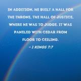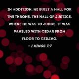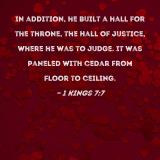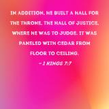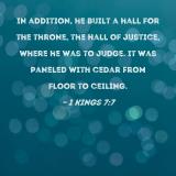 In addition, he built a hall for the throne, the Hall of Justice, where he was to judge. It was paneled with cedar from floor to ceiling.
