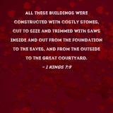 All these buildings were constructed with costly stones, cut to size and trimmed with saws inside and out from the foundation to the eaves, and from the outside to the great courtyard.
