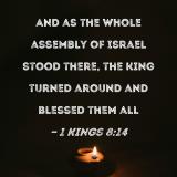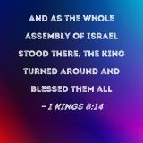 And as the whole assembly of Israel stood there, the king turned around and blessed them all