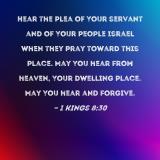 Hear the plea of Your servant and of Your people Israel when they pray toward this place. May You hear from heaven, Your dwelling place. May You hear and forgive.