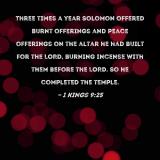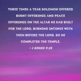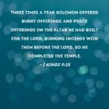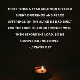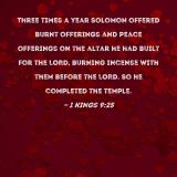 Three times a year Solomon offered burnt offerings and peace offerings on the altar he had built for the LORD, burning incense with them before the LORD. So he completed the temple.