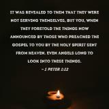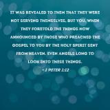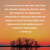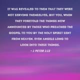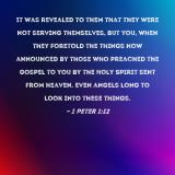 Pictures and Artwork It was revealed to them that they were not serving themselves, but you, when they foretold the things now announced by those who preached the gospel to you by the Holy Spirit sent from heaven. Even angels long to look into these things. |