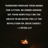 Therefore prepare your minds for action. Be sober-minded. Set your hope fully on the grace to be given you at the revelation of Jesus Christ.