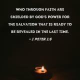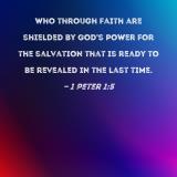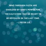 who through faith are shielded by God's power for the salvation that is ready to be revealed in the last time.