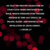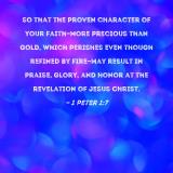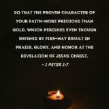 so that the proven character of your faith--more precious than gold, which perishes even though refined by fire--may result in praise, glory, and honor at the revelation of Jesus Christ.