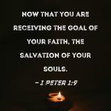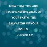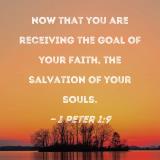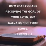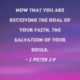 now that you are receiving the goal of your faith, the salvation of your souls.
