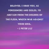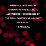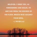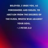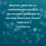 Beloved, I urge you, as foreigners and exiles, to abstain from the desires of the flesh, which war against your soul.