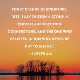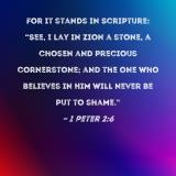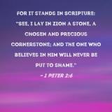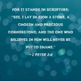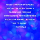 For it stands in Scripture: "See, I lay in Zion a stone, a chosen and precious cornerstone; and the one who believes in Him will never be put to shame."