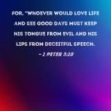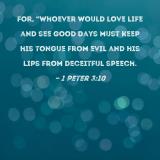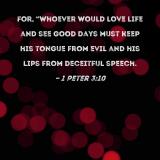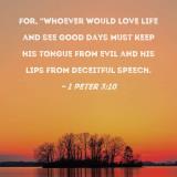 For, "Whoever would love life and see good days must keep his tongue from evil and his lips from deceitful speech.