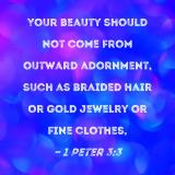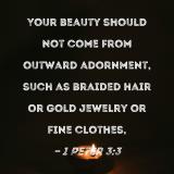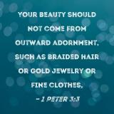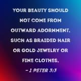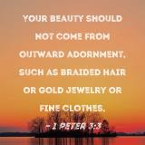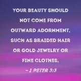 Your beauty should not come from outward adornment, such as braided hair or gold jewelry or fine clothes,