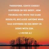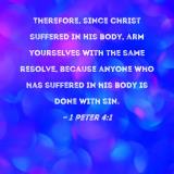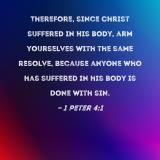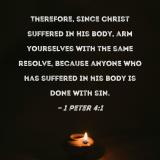 Therefore, since Christ suffered in His body, arm yourselves with the same resolve, because anyone who has suffered in his body is done with sin.