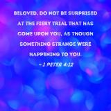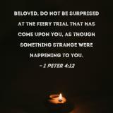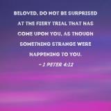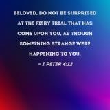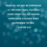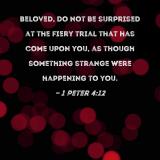 Beloved, do not be surprised at the fiery trial that has come upon you, as though something strange were happening to you.