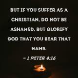 But if you suffer as a Christian, do not be ashamed, but glorify God that you bear that name.