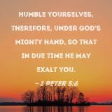 Humble yourselves, therefore, under God's mighty hand, so that in due time He may exalt you.