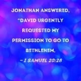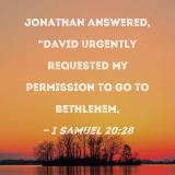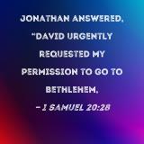 Jonathan answered, "David urgently requested my permission to go to Bethlehem,