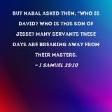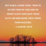 But Nabal asked them, "Who is David? Who is this son of Jesse? Many servants these days are breaking away from their masters.