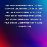 And should someone pursue you and seek your life, then the life of my lord will be bound securely by the LORD your God in the bundle of the living. But He shall fling away the lives of your enemies like stones from a sling.