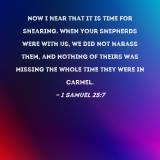 Now I hear that it is time for shearing. When your shepherds were with us, we did not harass them, and nothing of theirs was missing the whole time they were in Carmel.