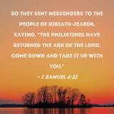 So they sent messengers to the people of Kiriath-jearim, saying, "The Philistines have returned the ark of the LORD. Come down and take it up with you."