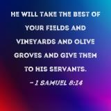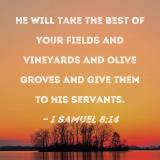He will take the best of your fields and vineyards and olive groves and give them to his servants.