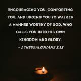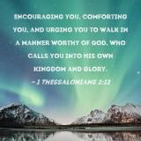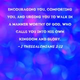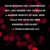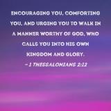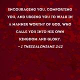 encouraging you, comforting you, and urging you to walk in a manner worthy of God, who calls you into His own kingdom and glory.