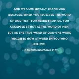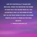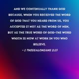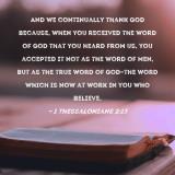 And we continually thank God because, when you received the word of God that you heard from us, you accepted it not as the word of men, but as the true word of God--the word which is now at work in you who believe.